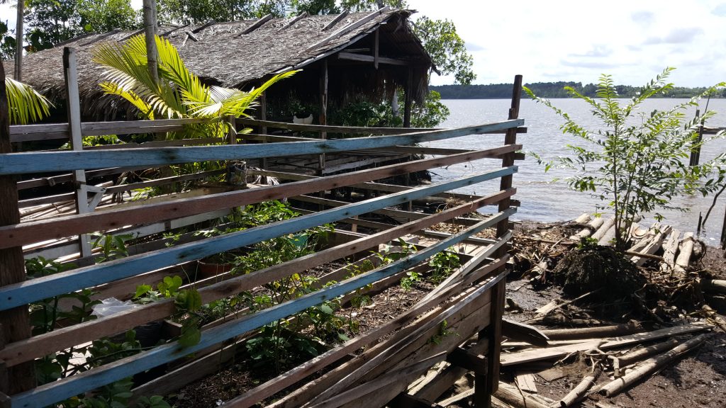 Não é só que as casas são em cima do rio: é que praticamente tudo é alagável, seja na época das grandes chuvas, seja simplesmente nas marés de rio ao longo do dia. Por isso, algumas casas das comunidades são unidas por ponte, mas normalmente chega-se no seu vizinho de barco ou até nadando.